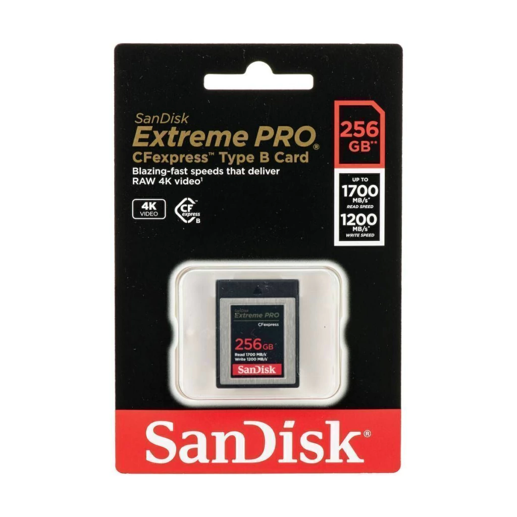 Projetado para fornecer as velocidades necessárias para trabalhar com capturas de vídeo 4K suaves e brutas em resoluções de até 4096 x 2160, o cartão Extreme PRO CFexpress Tipo B de 256 GB da SanDisk oferece velocidades de leitura de até 1700 MB/s e velocidades de gravação de até 1200 MB /s, que permite baixa latência durante gravação em alta velocidade e maior eficiência do fluxo de trabalho.