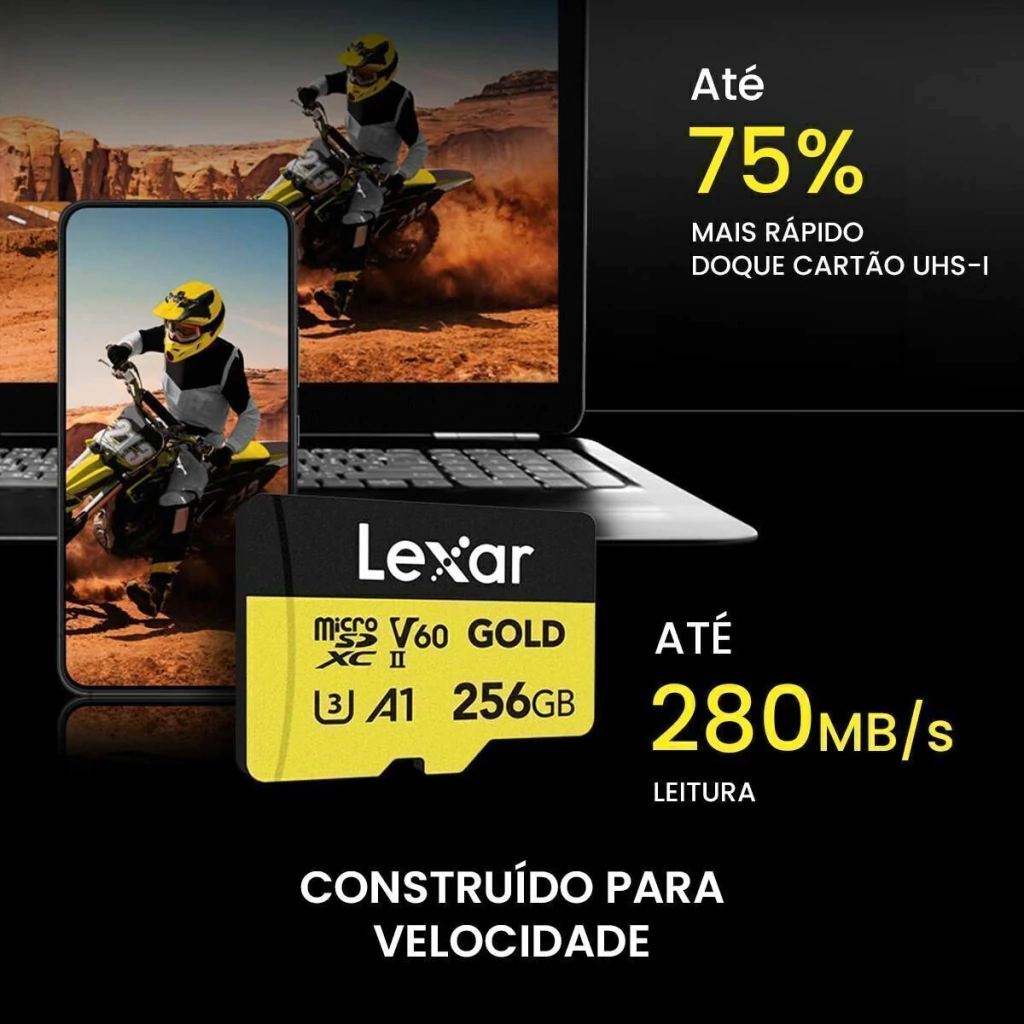01 Cartão de memória microSDXC Lexar 256GB Professional GOLD UHS-II