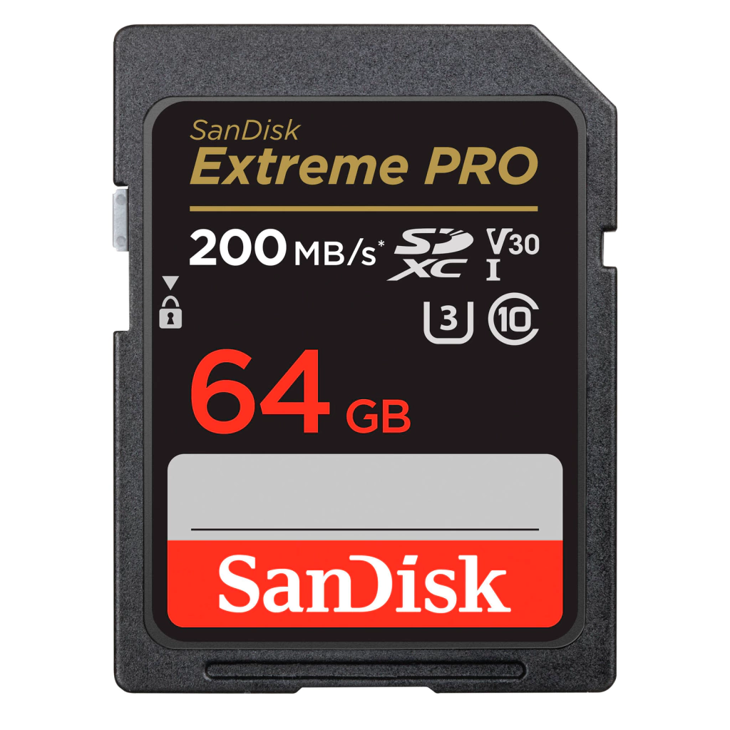 Projetado para dispositivos SD que capturam vídeos em Full HD, 3D e 4K, além de fotografias em RAW e em modo burst, o cartão de memória SDXC Extreme PRO UHS-I de 64 GB da SanDisk possui capacidade de 64 GB, é compatível com o barramento UHS-I e apresenta classificação de velocidade V30, que garante velocidades mínimas de gravação de 30 MB/s.