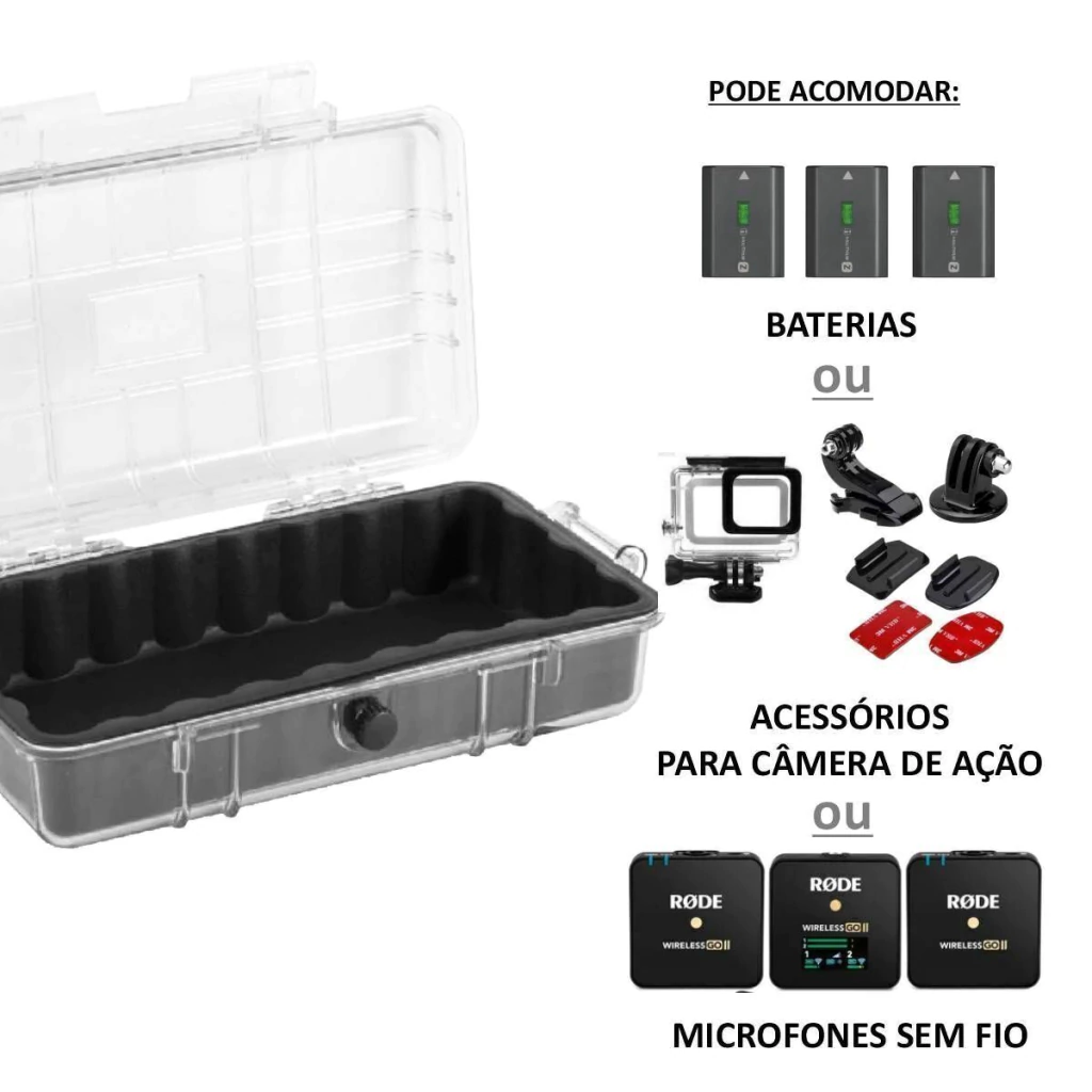 Case Estojo Acrílico anti impacto rigido transparente para proteção de acessórios de foto, vídeo e áudio.