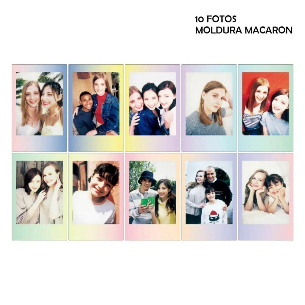 01 Pack com 10 fotos Fujifilm Mini Instax com moldura Macaron;