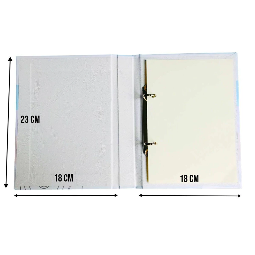 Dimensões do álbum: 18 cm (largura) x 23 cm (altura) x 3 cm (espessura)