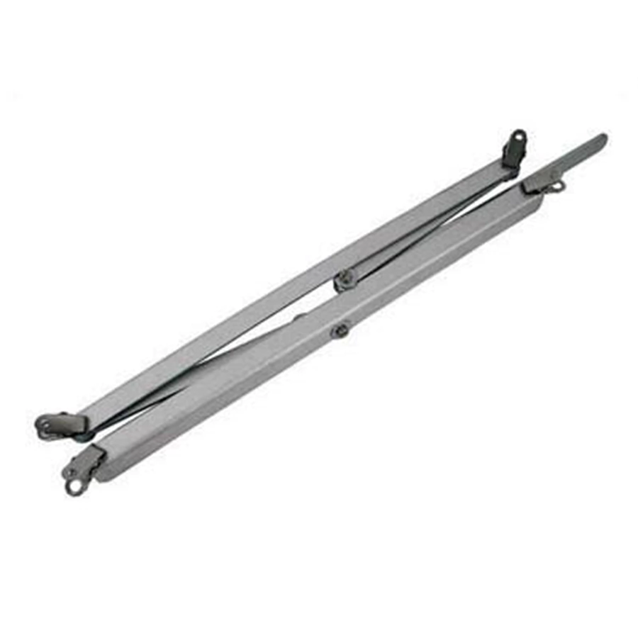 Feito em alumínio, sua haste é dobrável e o tecido branco é feito em nylon.