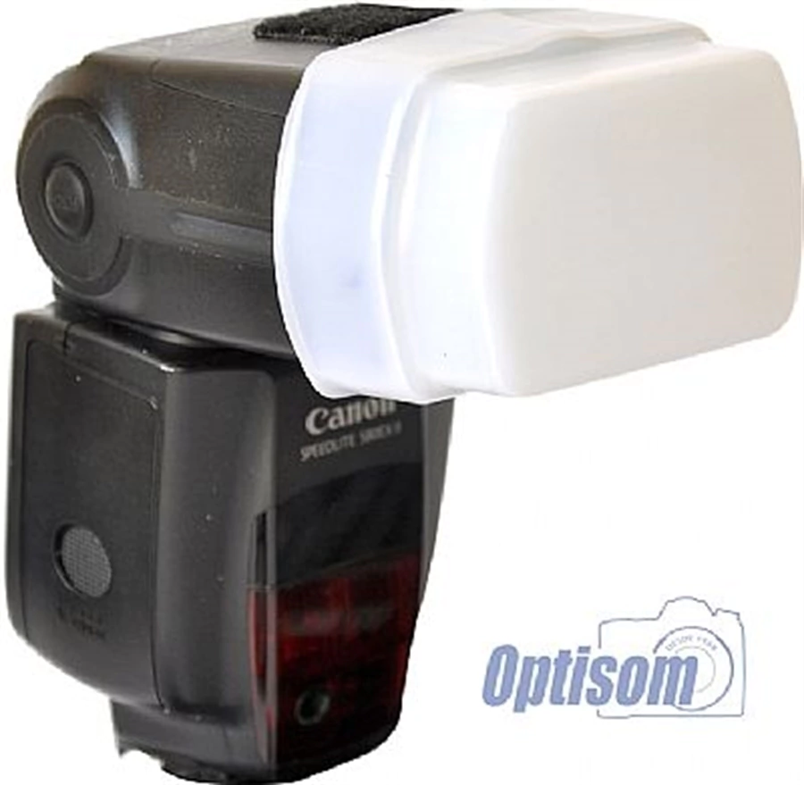 Difusor speedlite de plástico com encaixe de pressão que permite suavizar as luzes fortes e criar uma iluminação mais agradável, atenuando as sombras.