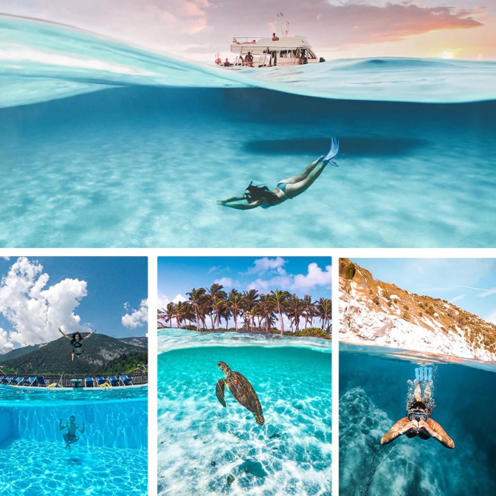 Esse Dome telesin permite ter uma foto dividida, unindo assuntos que estão debaixo d'água com assuntos que estão fora, proporcionando uma foto diferente de todas que estamos acostumados a ver nas redes.
