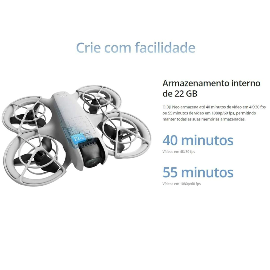 Armazenamento interno de 22 GB: o DJI Neo pode armazenar até 40