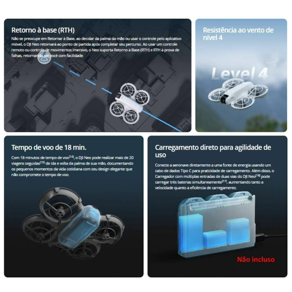 Com até 18 minutos de tempo de voo, o DJI Neo pode realizar mais de