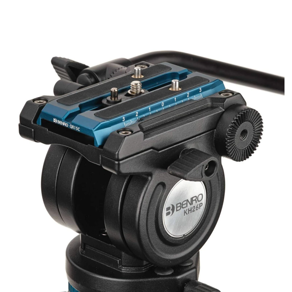A QR15C Quick Release Plate da Benro foi projetada para funcionar com os tripés KH25PC e KH26PC. Ela apresenta dois pinos antirrotação embutidos com mola para evitar a rotação da câmera e marcações de escala adicionais.