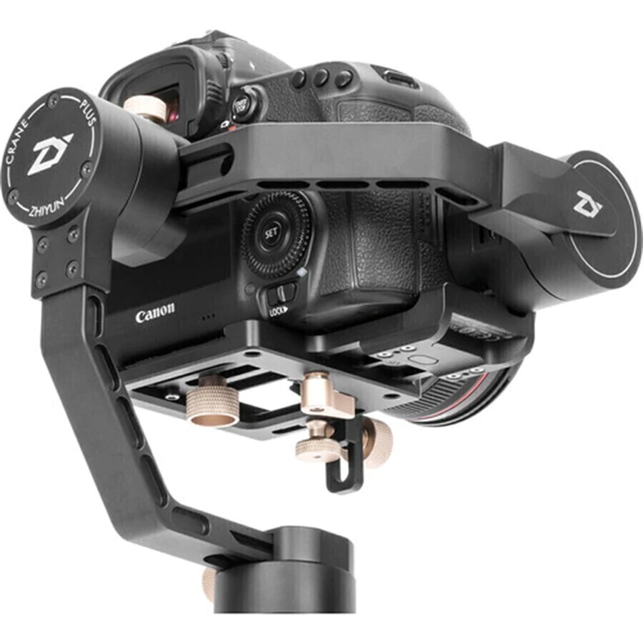 O Crane Plus suporta uma grande capacidade de carga útil de até 2,5 kg e fornece controle integrado para câmeras DSLR e algumas mirroless. Com rotação de 360 ??° ao longo de todos os três eixos e até 45 ° de rolagem sincronizada no modo POV, o Crane Plus oferece uma infinidade de ângulos de disparo suaves e estabilizados.