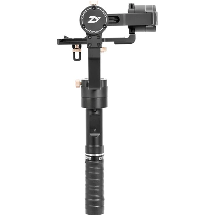 O Crane Plus foi projetado para câmeras DSLR e sem espelho com peso de até 5,5 lb e inclui um suporte de lente destacável para lentes longas. O mini-tripé de alumínio incluído funciona como um punho estendido, e um orifício de montagem de 1/4 "-20 na parte inferior do cardan permite seu uso com monopés e outros suportes. Esse gimbal também pode ser controlado sem fio através do ZY Play para download no iOS / Aplicativo para Android: o Crane Plus é alimentado por duas baterias de íons de lítio incluídas 26500, que apresentam um tempo de duração de 12 a 18 horas e um tempo médio de carregamento de três horas.