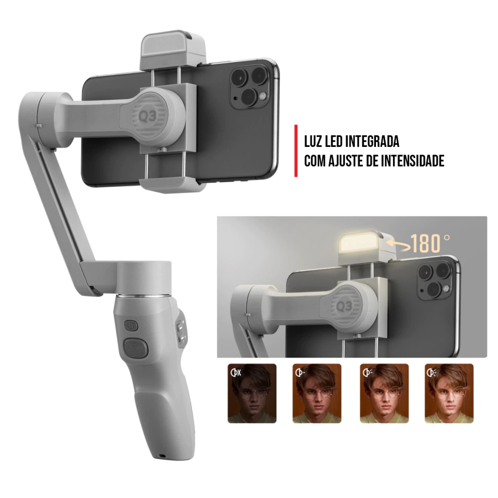 Smooth-Q3 compacto de 3 eixos dobrável, com uma luz de vídeo LED embutida com