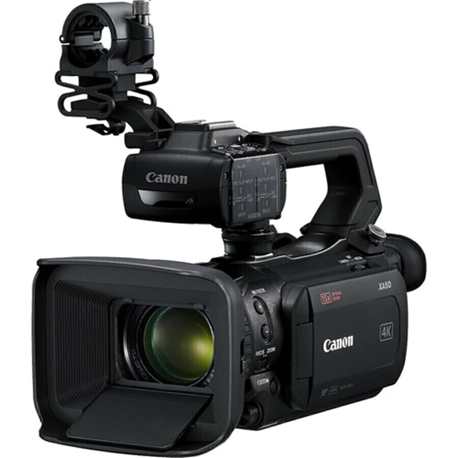 A Camcorder Canon XA50 Professional UHD 4K é uma câmera compacta e leve, com captura UHD 4K, um sensor CMOS de 1", duas entradas de áudio XLR e uma saída mini-HDMI que se encaixa na categoria ENG para produções no estilo de documentários ou jornalismo.