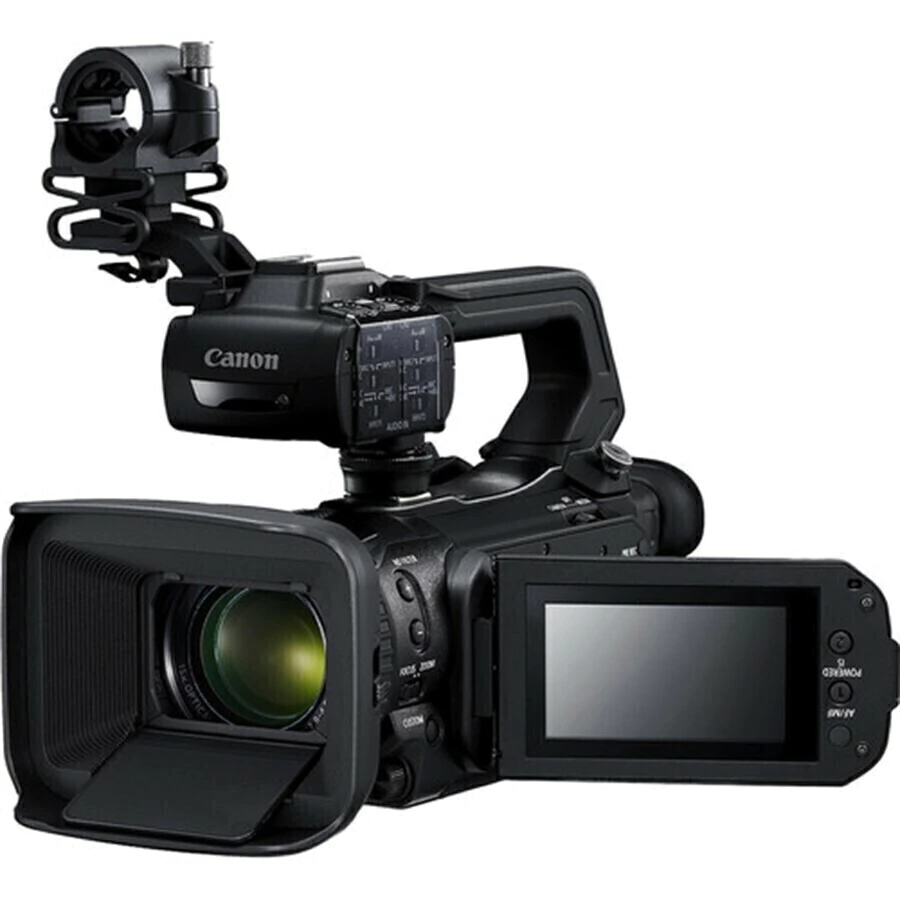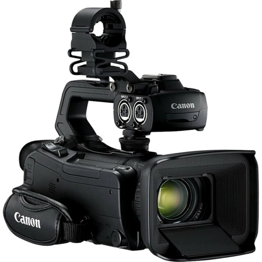 A Camcorder Canon XA55 Professional UHD 4K é uma câmera compacta e leve, com captura UHD 4K, um sensor CMOS de 1", duas entradas de áudio XLR e uma saída mini-HDMI que se encaixa na categoria ENG para produções no estilo de documentários ou jornalismo.