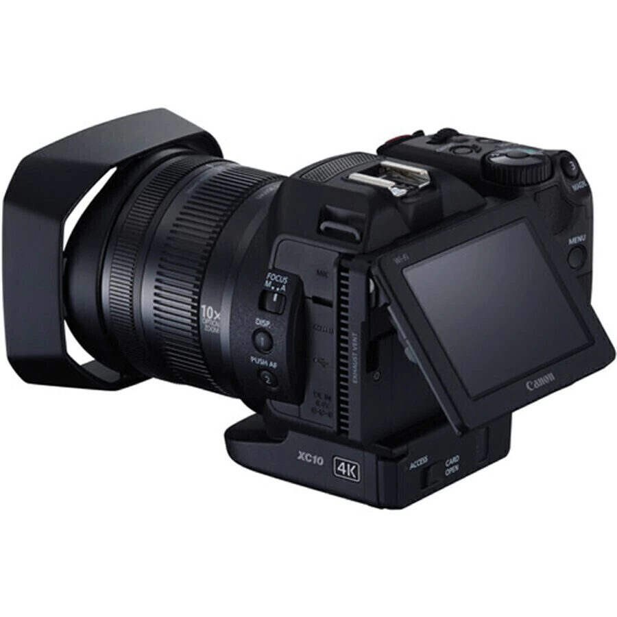 Com a câmera de vídeo XC10 4K da Canon, a capacidade profissional de gravação Ultra HD 4K é apresentada em um pacote projetado ergonomicamente para operação e portabilidades. A câmera incorpora uma lente de zoom manual de 10x f / 2.8 a 5.6 no estilo SLR com capacidade de foco automático e manual.