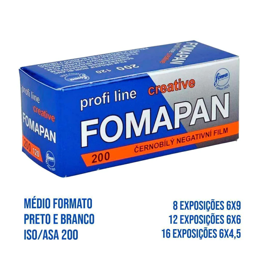 Filme fotográfico Negativo Pancromático Fomapan 200 Creative da Foma preto e branco com uma sensibilidade nominal de ISO 200/24 ° para câmeras de médio formato.