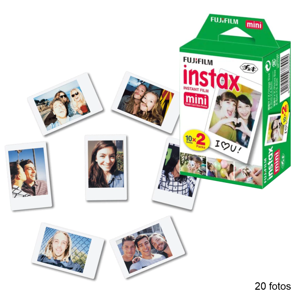 01 Pack com 20 filmes Fujifilm Mini Instax com moldura BRANCA;