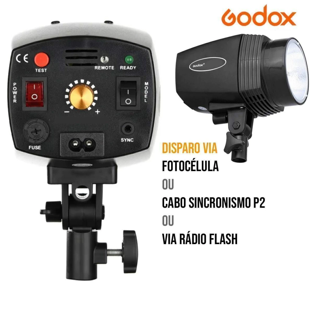 KIT FLASH TOCHA ESTÚDIO GODOX K-180A + Disparador sem fio Rádio Flash Godox CT-16 para câmeras com Sombrinhas e Tripé Inlcuso!
