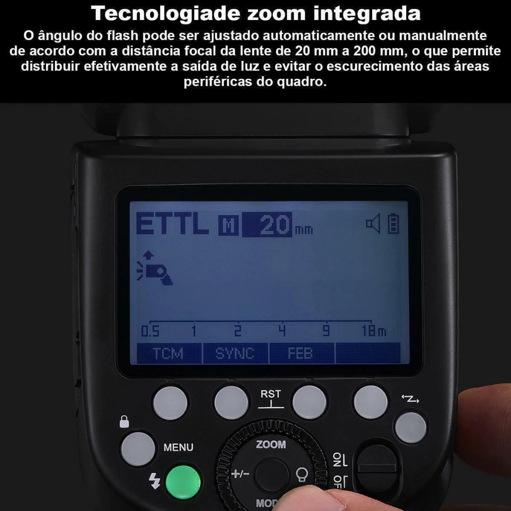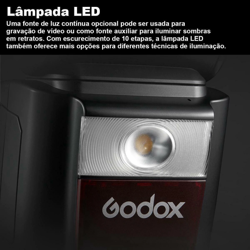 outros flashes ou tochas Godox e também pode ser controlado por transmissores