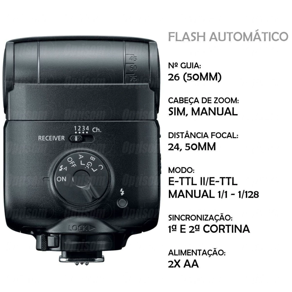 Oferecendo um número guia de 26 em ISO 100 e 50 mm, este