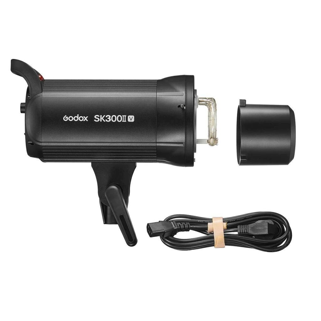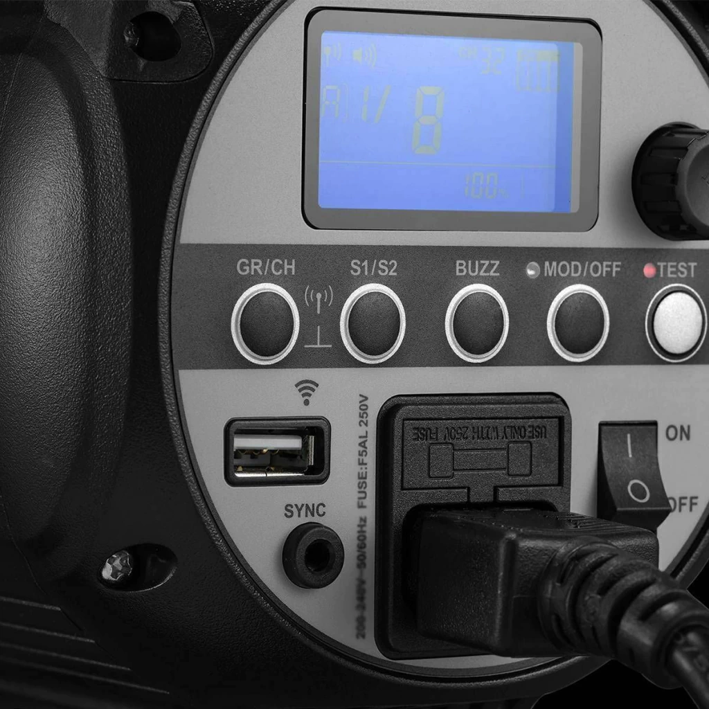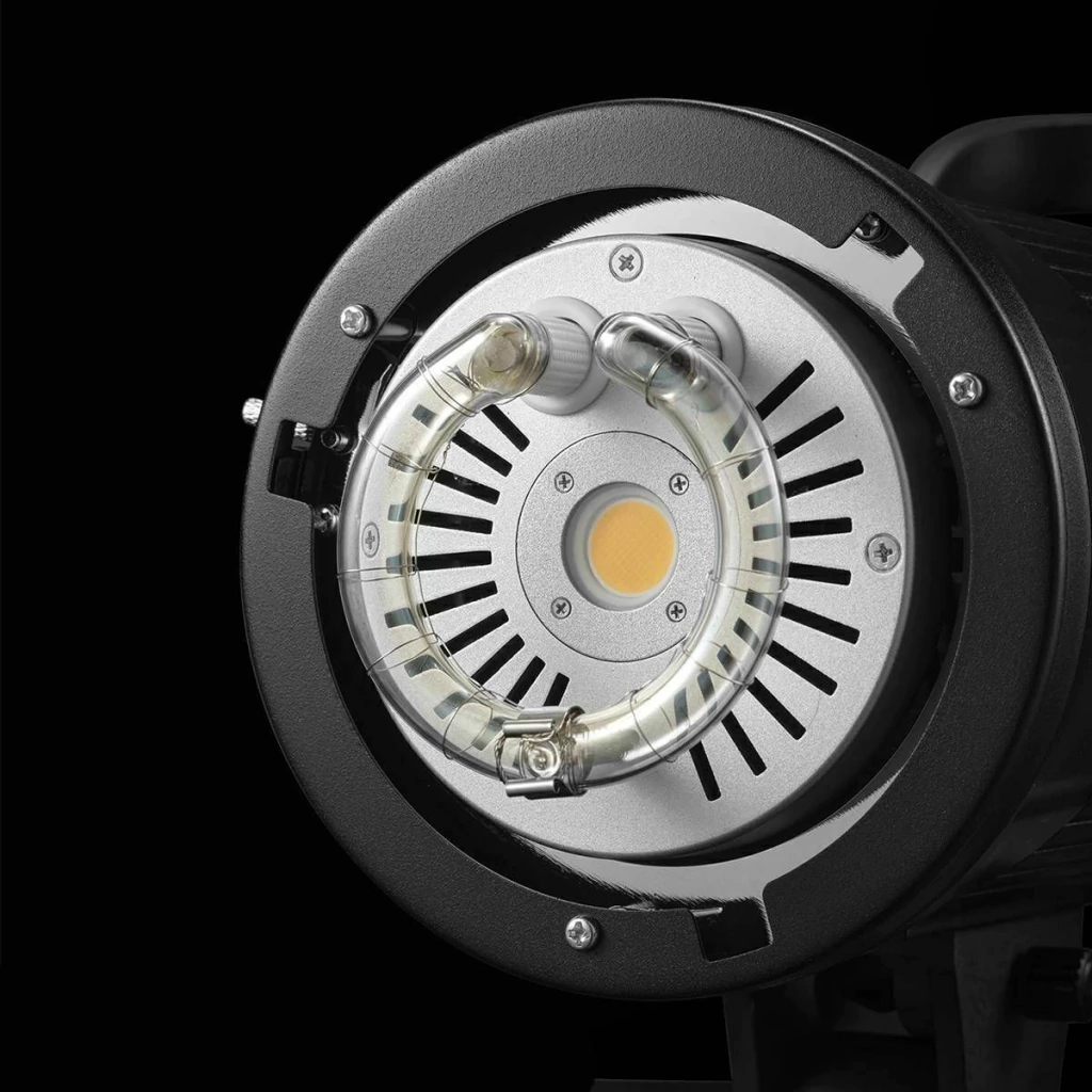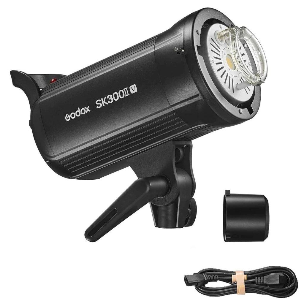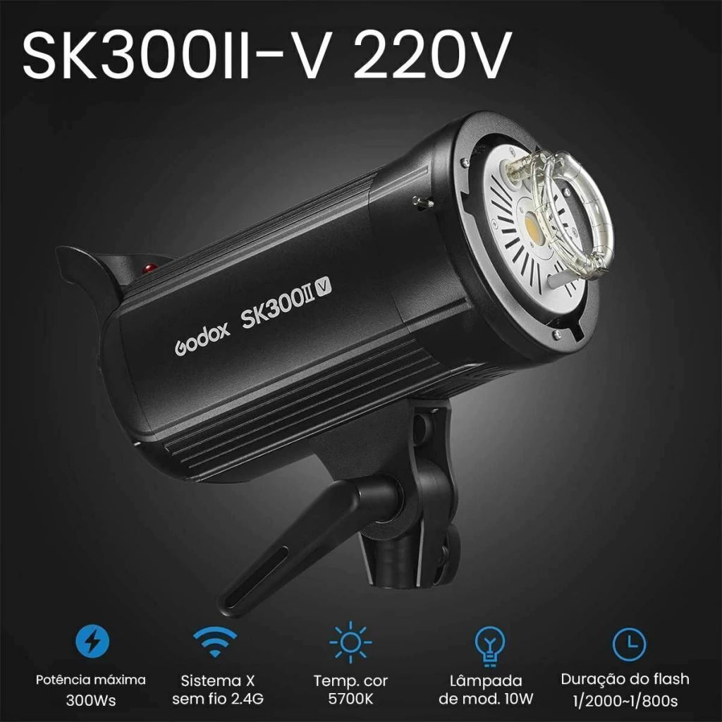 Com um número guia de 58 m, o SK300II-V 110V Studio Flash Monolight da Godox substitui o modelo original de lâmpada halógena de 150W por uma lâmpada de modelagem LED de 10W que consome muito pouca energia com grande brilho.