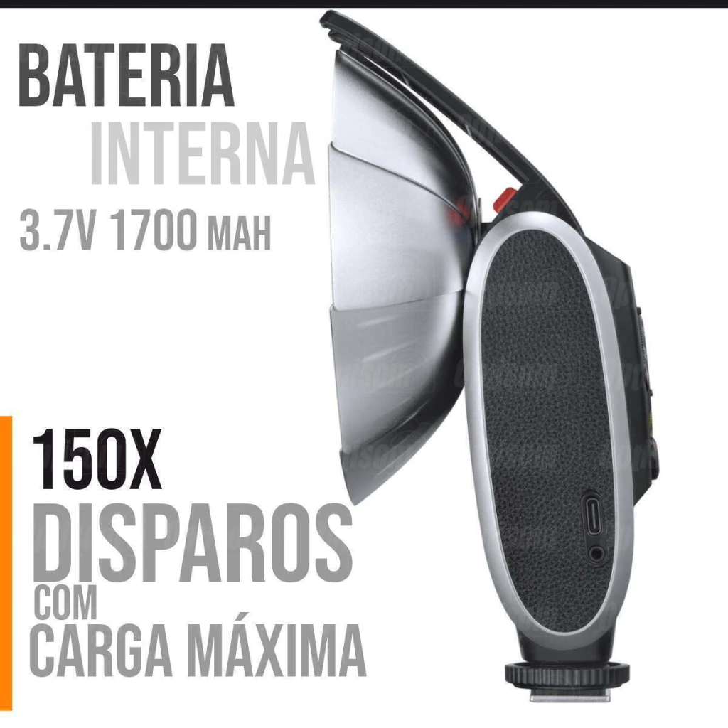 bateria interna que dura até 150x disparos em carga máxima e pode ajusta o modo