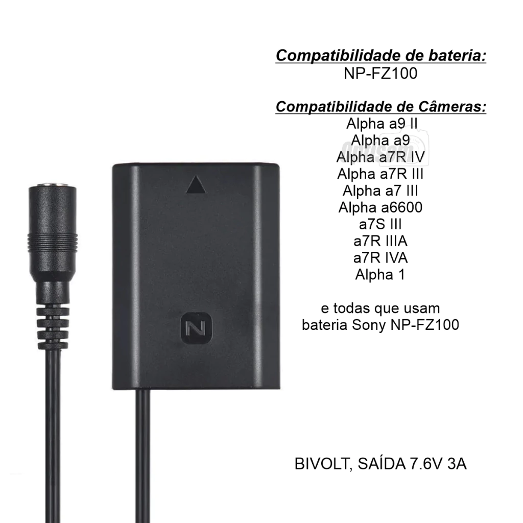 Fonte adaptadora para Tomada AC-FZ100 compatível com todas