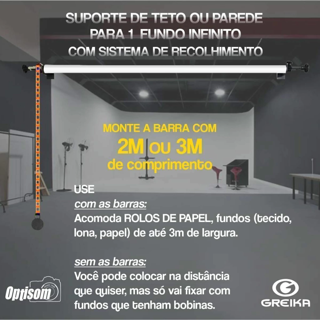 CONJUNTO FUNDO INFINITO 2x10m DE PAPEL + Suporte Parede, teto ou tripés de iluminação Greika ES-B1.