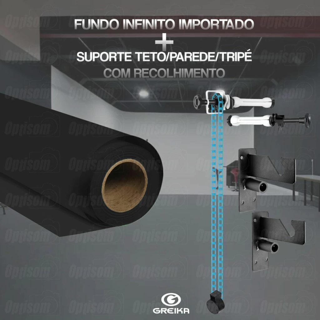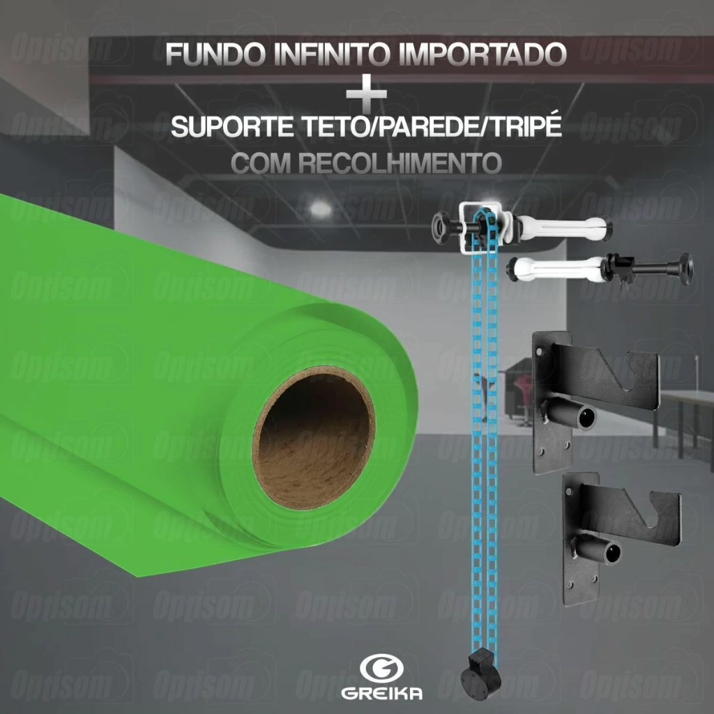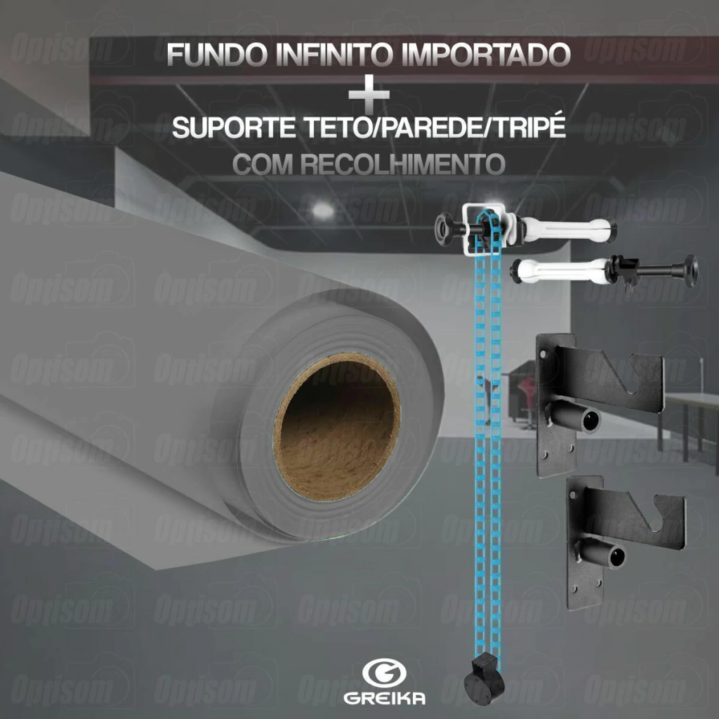 01 Conjunto suporte fundo teto/parede ou tripé da Greika modelo