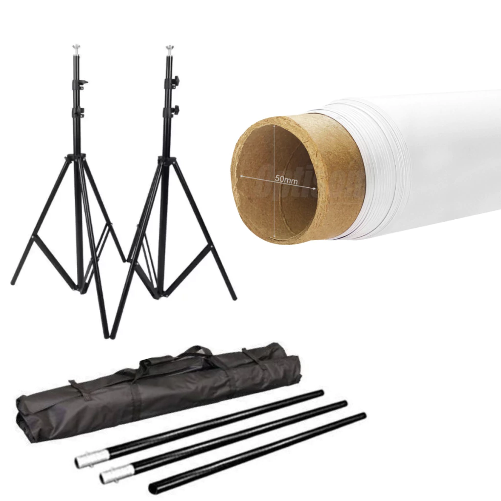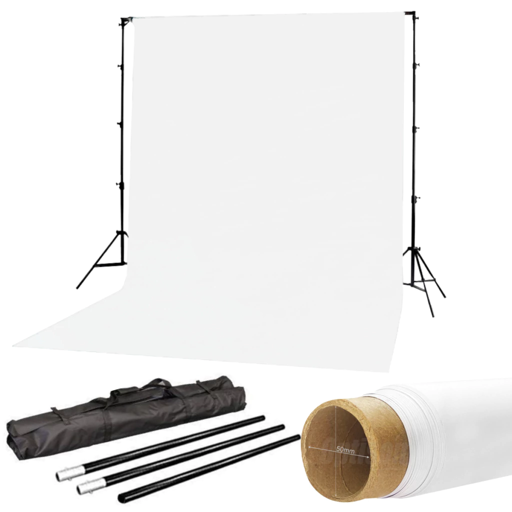 Kit FUNDO INFINITO FOTOGRÁFICO DE PAPEL BRANCO 2 metros de largura por 5 metros de comprimento + SUPORTE DE FUNDO INFINITO GREIKA.