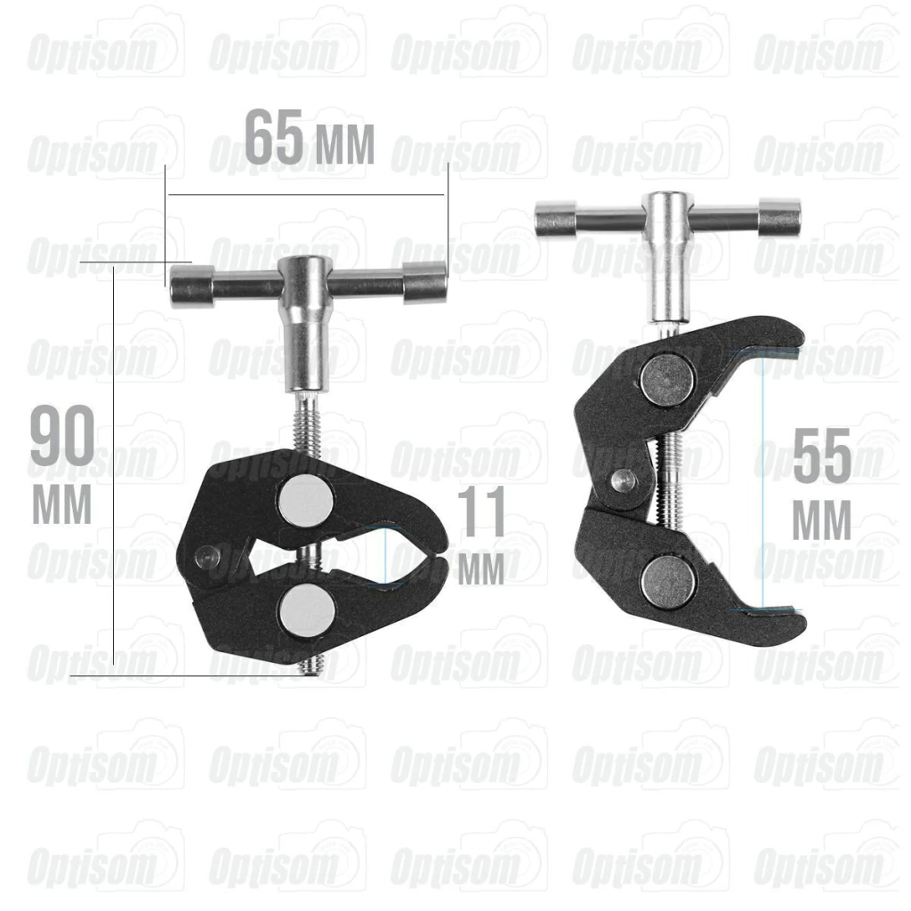 Garra Clamp braçadeira para tubos e superfícies retas Greika com rosca 3/8" e rosca 1/4" para fixar acessórios.