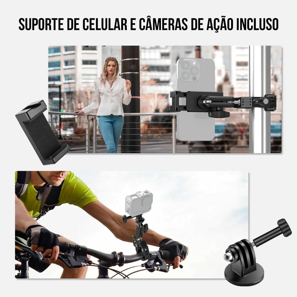 Também usando parafuso de 1/4" para conectar monitores, luzes LED, microfones e muito mais. A carga útil máxima é de 3,0 kg