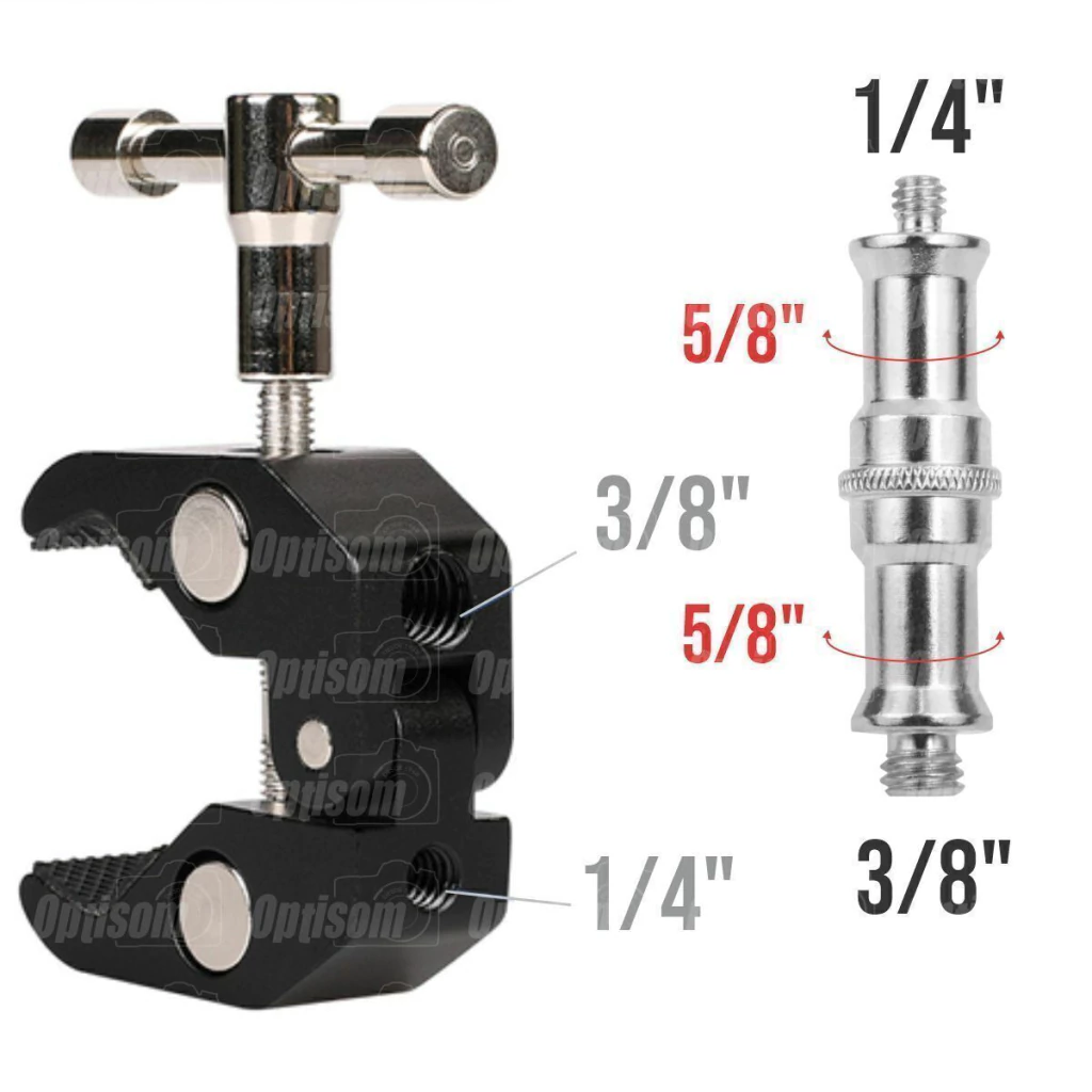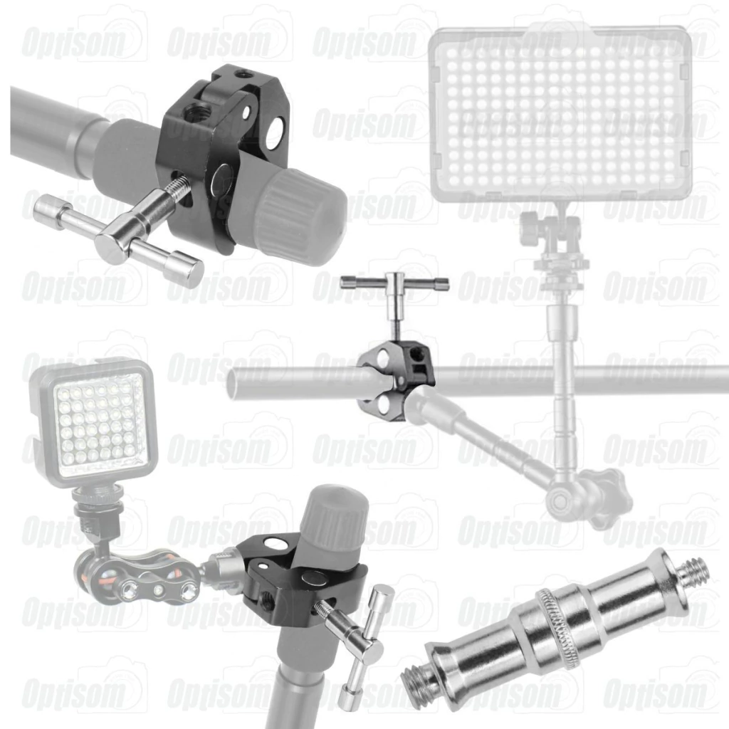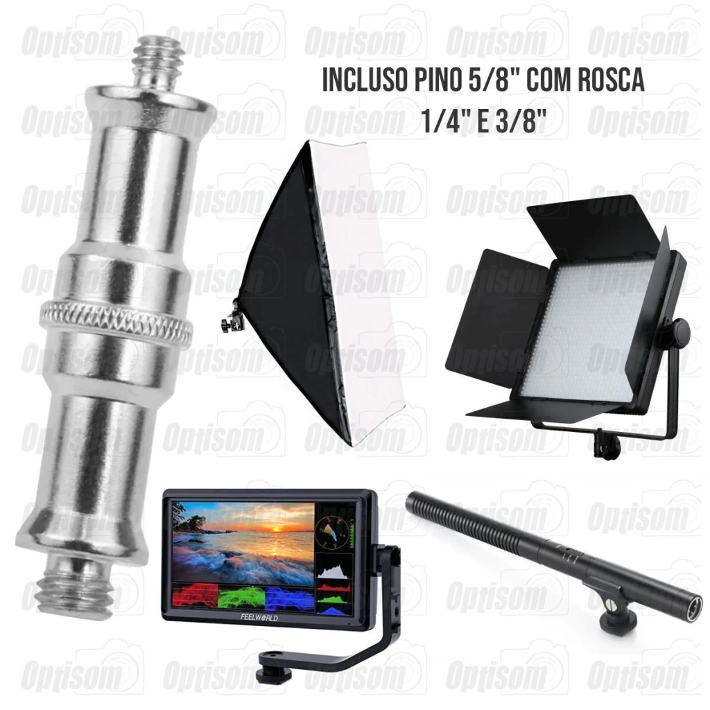 Incluso pino 5/8” com rosca para fixar softbox, leds,