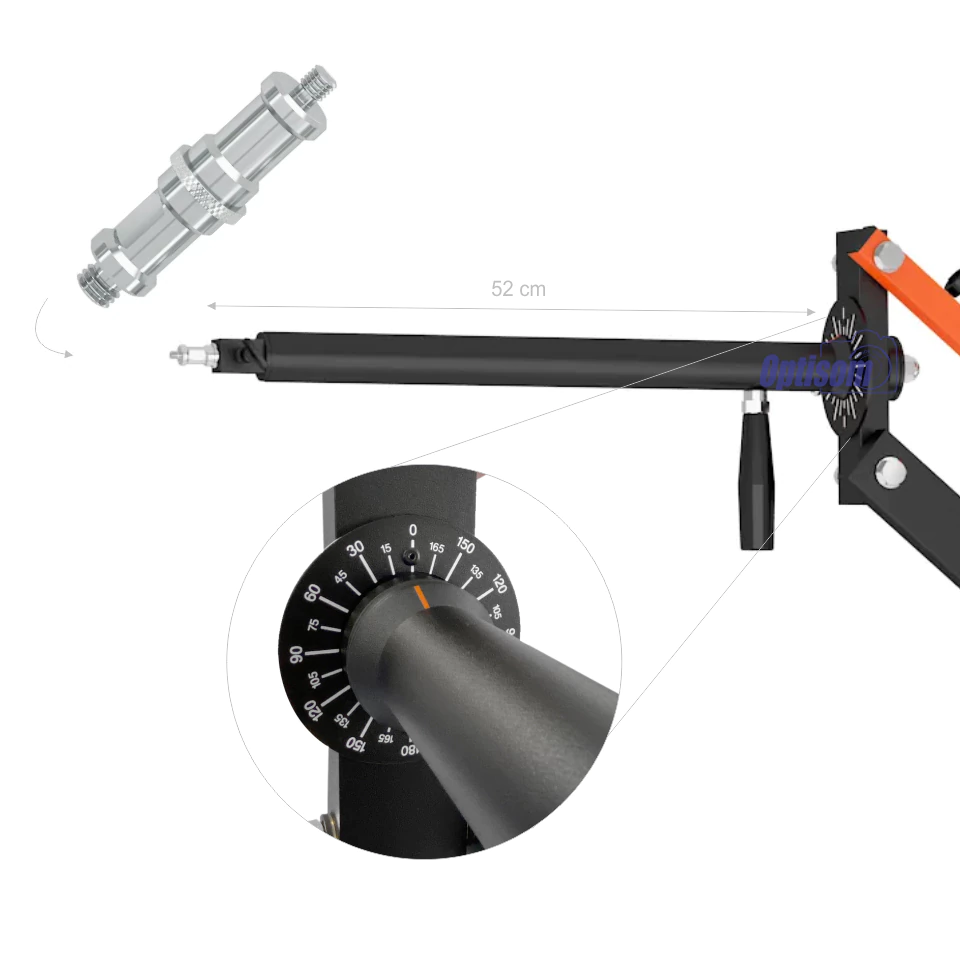 Girafa tipo Paralegramo, mantém a haste principal sempre na posição horizontal. Inclinação total de 150°.