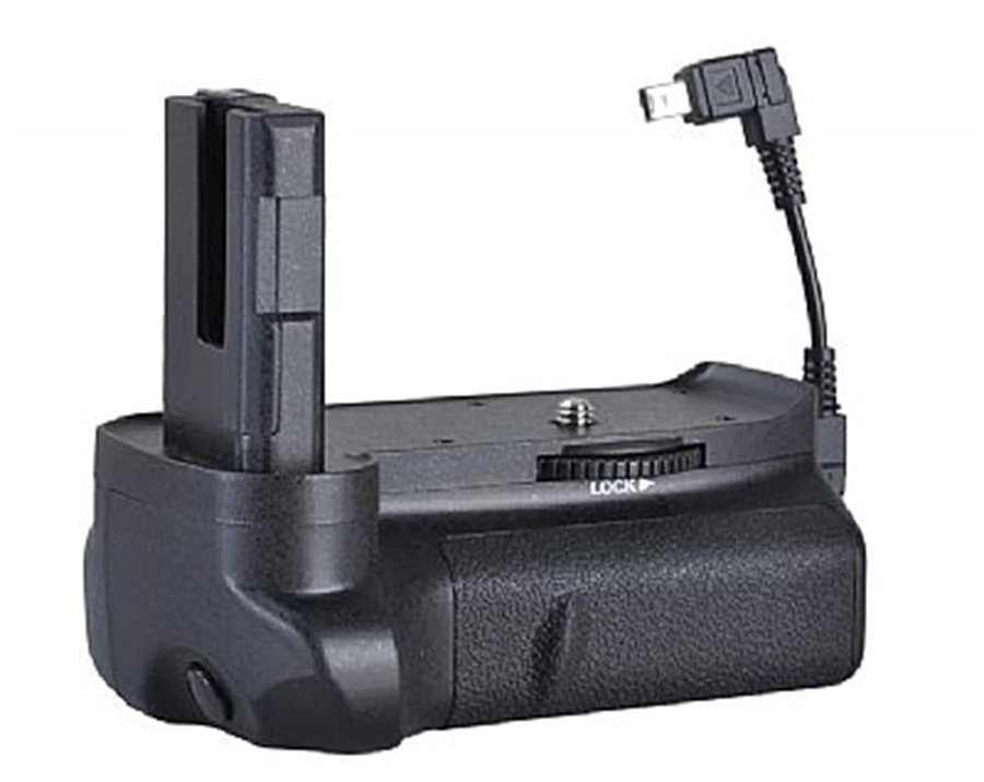 Battery Grip da Câmera Nikon D3300, D3200 e D3100 comporta 2 duas baterias EN-EL14 dobrando de maneira efetiva seu poder de trabalho.