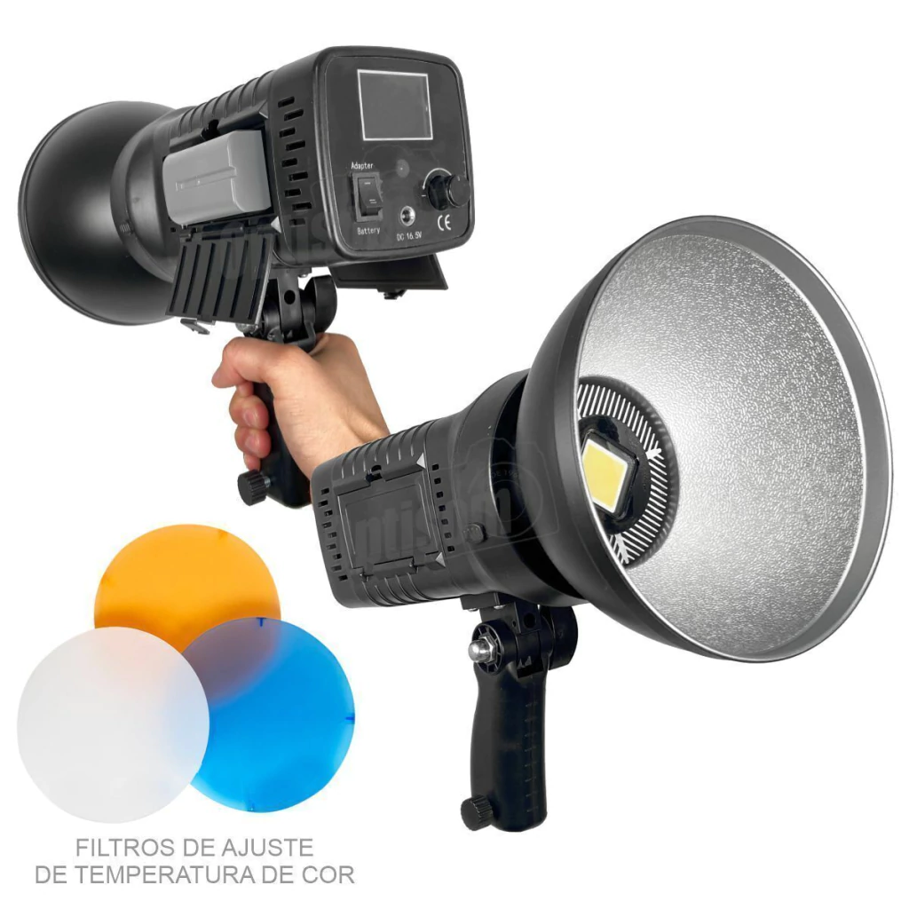 SUPER COMPACTO, esse iluminador COB LED é muito leve, versátil, POTENTE e PODE SER USADO EM QUALQUER LUGAR, seja ambientes internos ou externos.