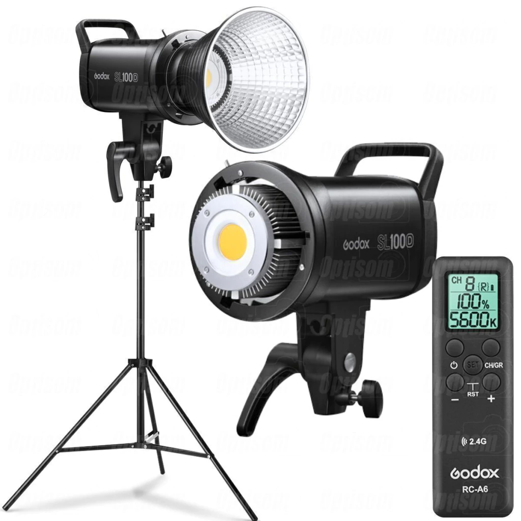 Kit Iluminador COB LED Godox SL100D 5600K Luz contínua FRIA DAYLIGHT com potência de 100W LED + Tripé 2m Greika + Controle Remoto Godox RC-A6