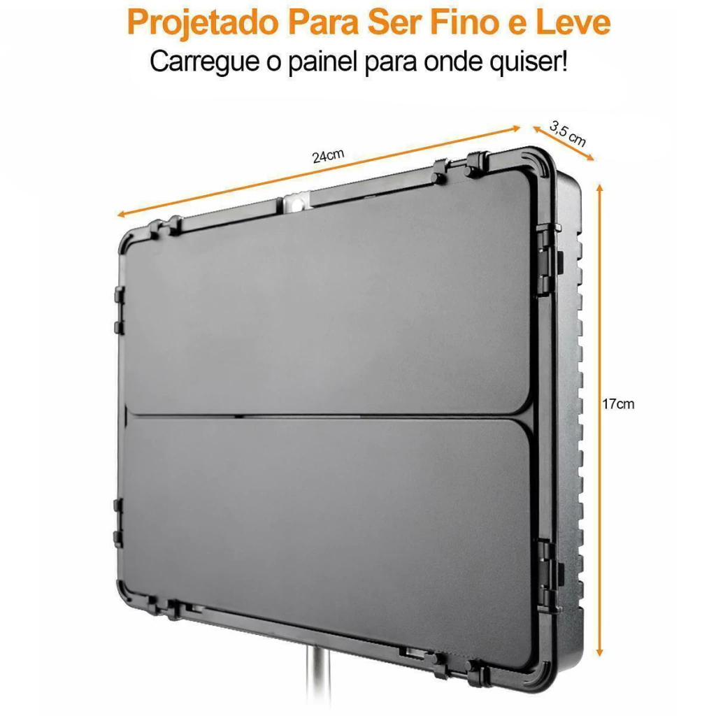 Painel Iluminador LED Mamen TL-600AS possui 600 lâmpadas led de ótima qualidade, sendo 300 delas de Luz Fria (5600K) e 300 de Luz Quente (3200K), ideais para fotografias, filmagens em estúdio e externas como eventos.