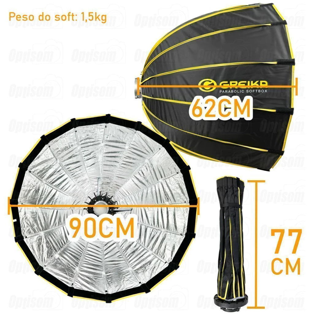 01 Softbox 90CM Montagem Rápida Bowens com Grid GREIKA;