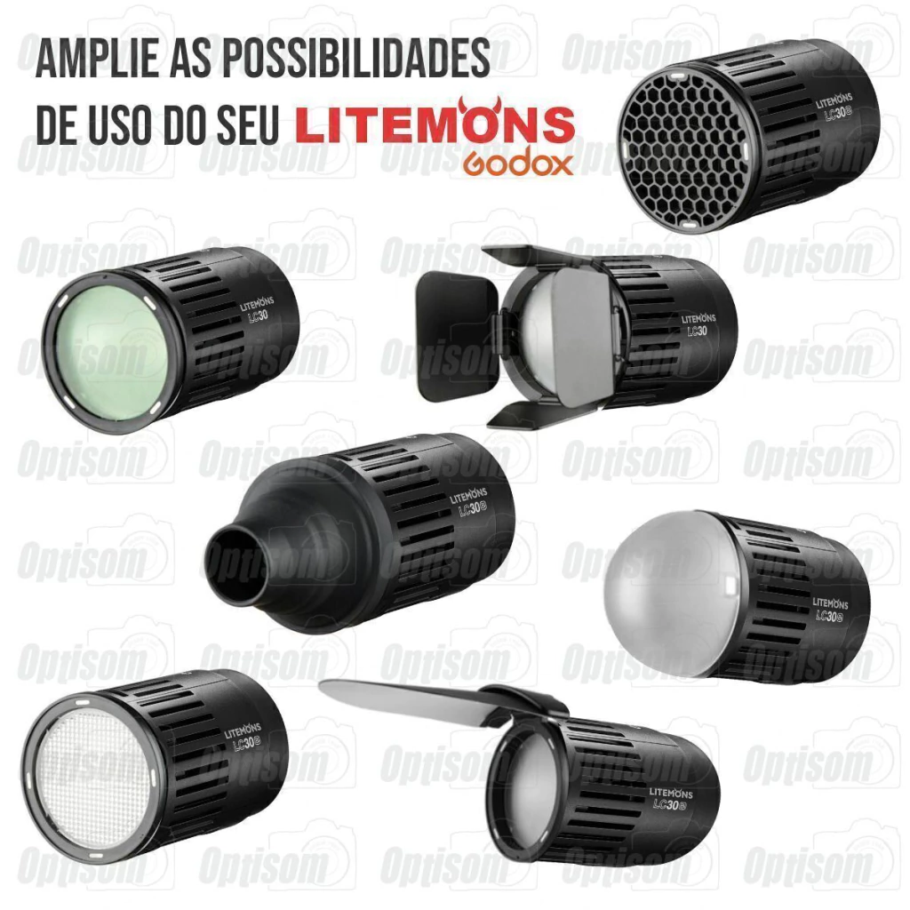 KIT ILUMINADOR GODOX LITEMONS LC30D + KIT DE ACESSÓRIOS GODOX AK-R1 + TRIPÉ
