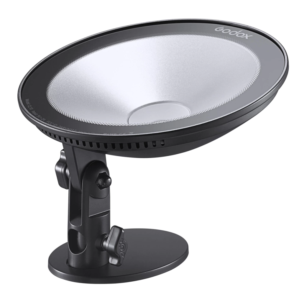 A luz de 18 cm de diâmetro é uma fonte de luz RGB com controle de matiz, saturação e intensidade, dando acesso a 36.000 cores personalizadas para suas sessões de live streaming.