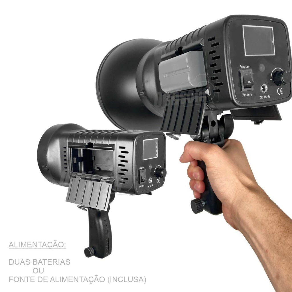 Pode usar tanto na mão quanto em tripés de iluminação pino 5/8".