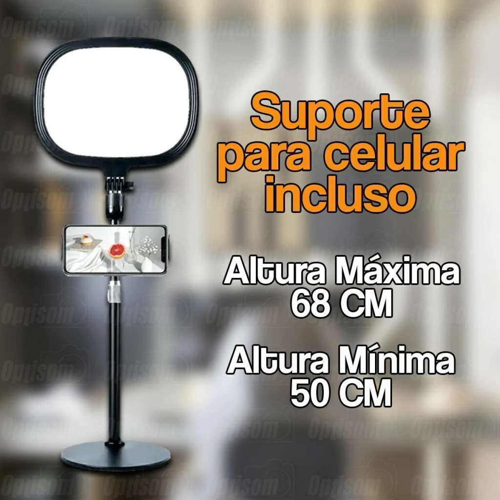 Iluminador de LED 12w de potência de mesa com suporte para celular com ajuste de cor em 5 tons variando de branco frio até branco quente para live stream , reels, tiktok e shorts, ideal para sua criação de conteúdo.