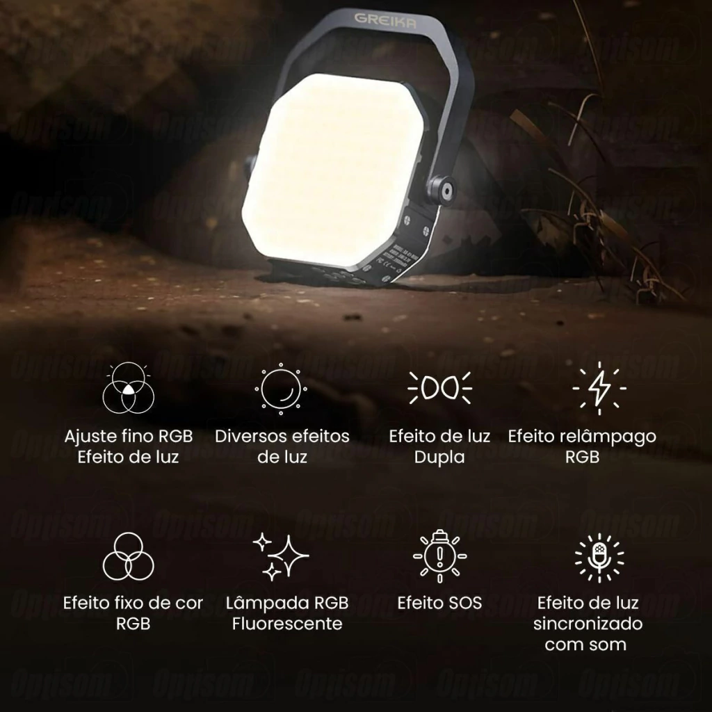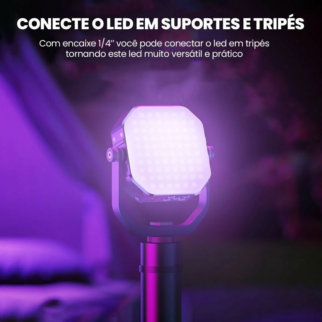 Alimentado por bateria recarregável, possui uma interface simples de controle e suporte para tripé integrado. Ideal para criação de ambientes e efeitos visuais impactantes.
