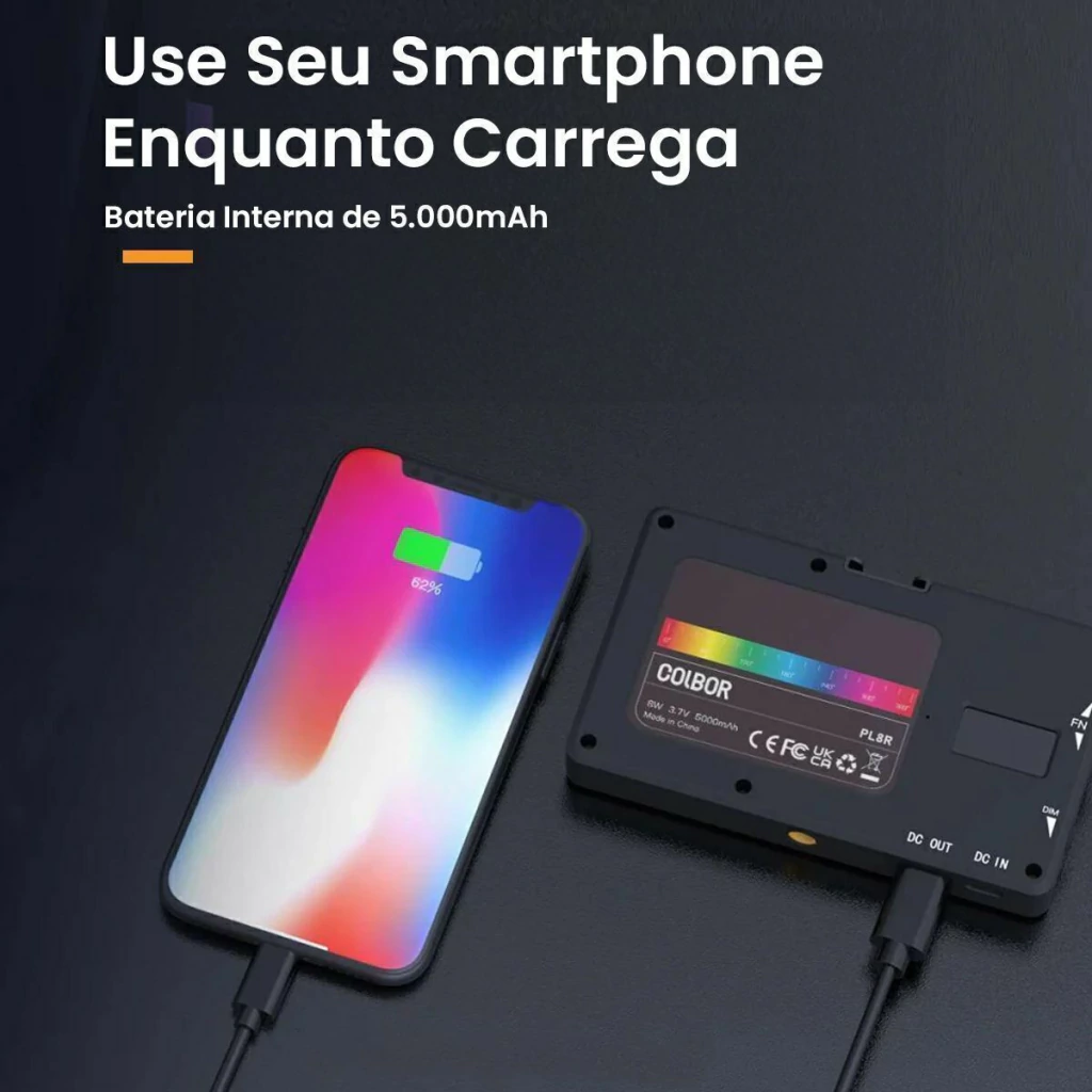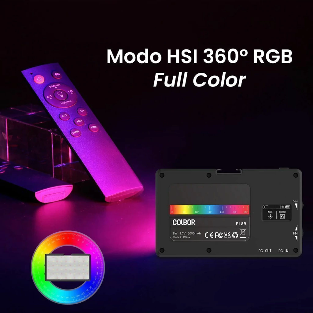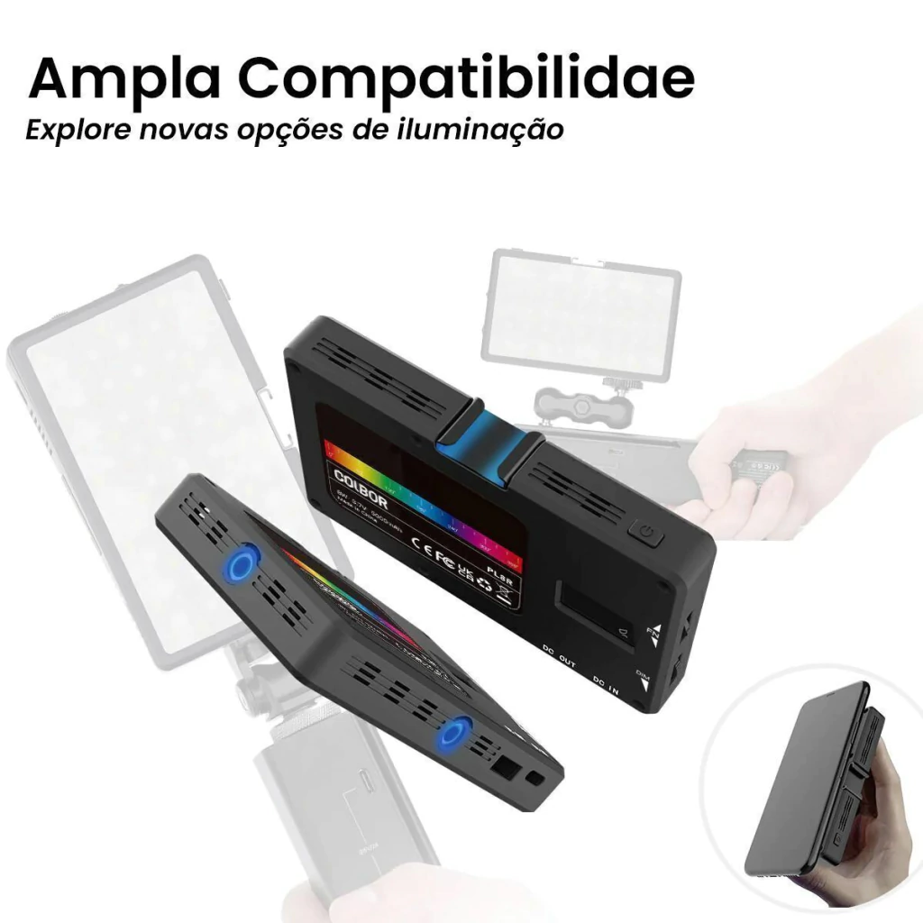 Adicione luz bicolor ajustável à sua produção de vlogging, transmissão ao vivo ou sessão de fotografia com a luz de bolso LED PL8R RGB da COLBOR . Esta luz compacta apresenta uma seleção completa de cores RGB, bem como uma temperatura de cor de 2.500 a 9.000 K, escurecimento e saturação de 0 a 100%, matiz de 360°, um display de status traseiro brilhante e uma bateria integrada de 5.000 mAh com carregamento USB-C.