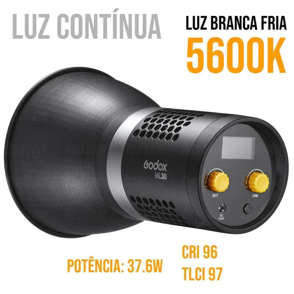 Iluminador compacto e potente Godox ML30 5600K Luz contínua