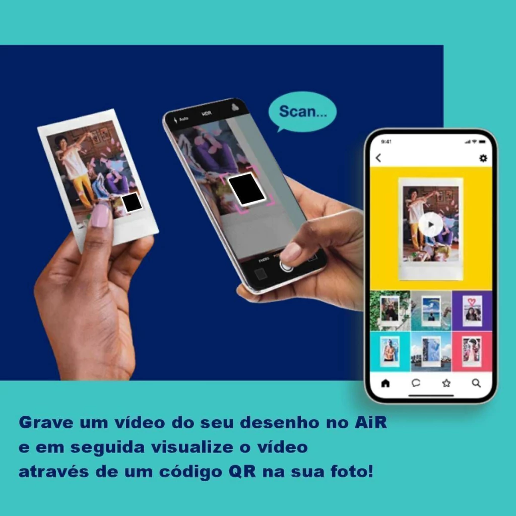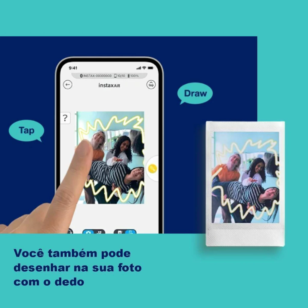 Use o recurso INSTAXAiR para adicionar bolhas, pétalas, neon, tinta spray, glitter, rabiscos e formas às suas fotos, tudo desenhando no ar.