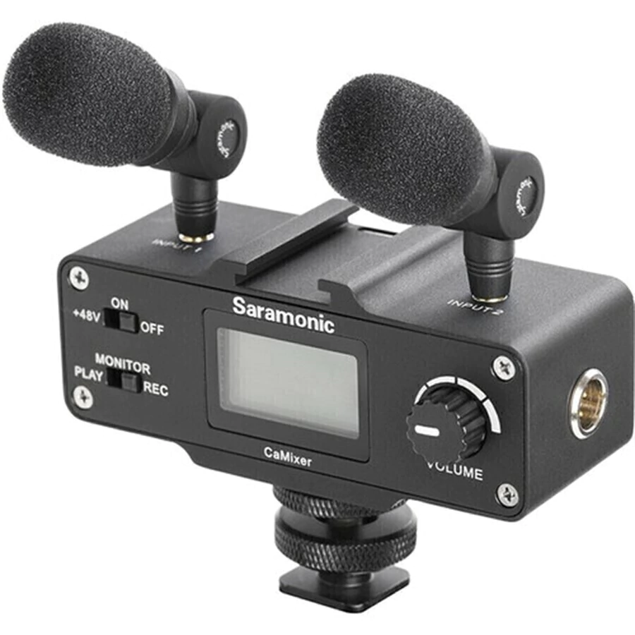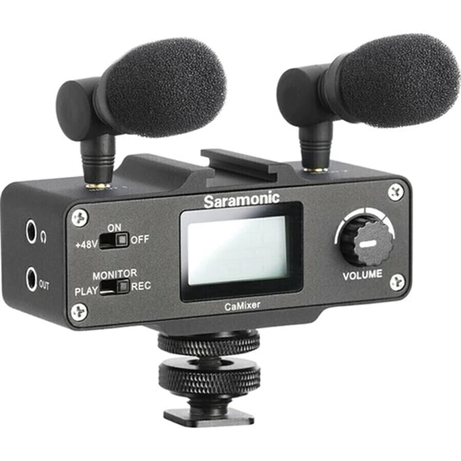 O Kit de Microfone Condensador Estéreo CaMixer da Saramonic é um mixer de áudio profissional de dois canais projetado para uso portátil com DSLRs e câmeras de vídeo. O CaMixer oferece gravação de áudio de qualidade profissional e possui uma entrada mini-XLR e duas entradas de mic estéreo de 3,5 mm (TRS P2), além de alimentação phantom e um conector de monitoramento de fone de ouvido. Este mixer é capaz de capturar gravações de alta qualidade, no campo ou em movimento. O CaMixer vem com dois microfones condensadores, além de todos os suportes e conectores necessários para iniciar a gravação diretamente da caixa. Ele possui um dial para controlar o ganho dos microfones. Microfones condensadores estéreo duplos com padrão ajustável de 360 ° Itens Inclusos: 01 Interface Saramonic CaMixer; 01 Cabo simples P3/P2 30 cm; 01 Cabo duplo P3/P2/P2 30 cm; 01 Cabo Mini Xlr Macho / XLR fêmea 60 cm. Marca: Saramonic Peso aproximado: 156 g Garantia: 06 meses