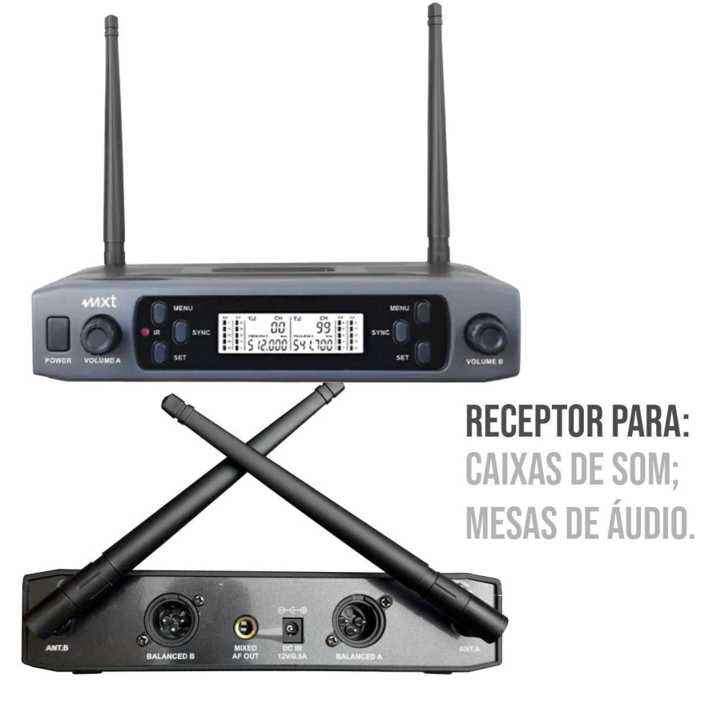 Banda alta UHF com 100 frequências selecionáveis.
