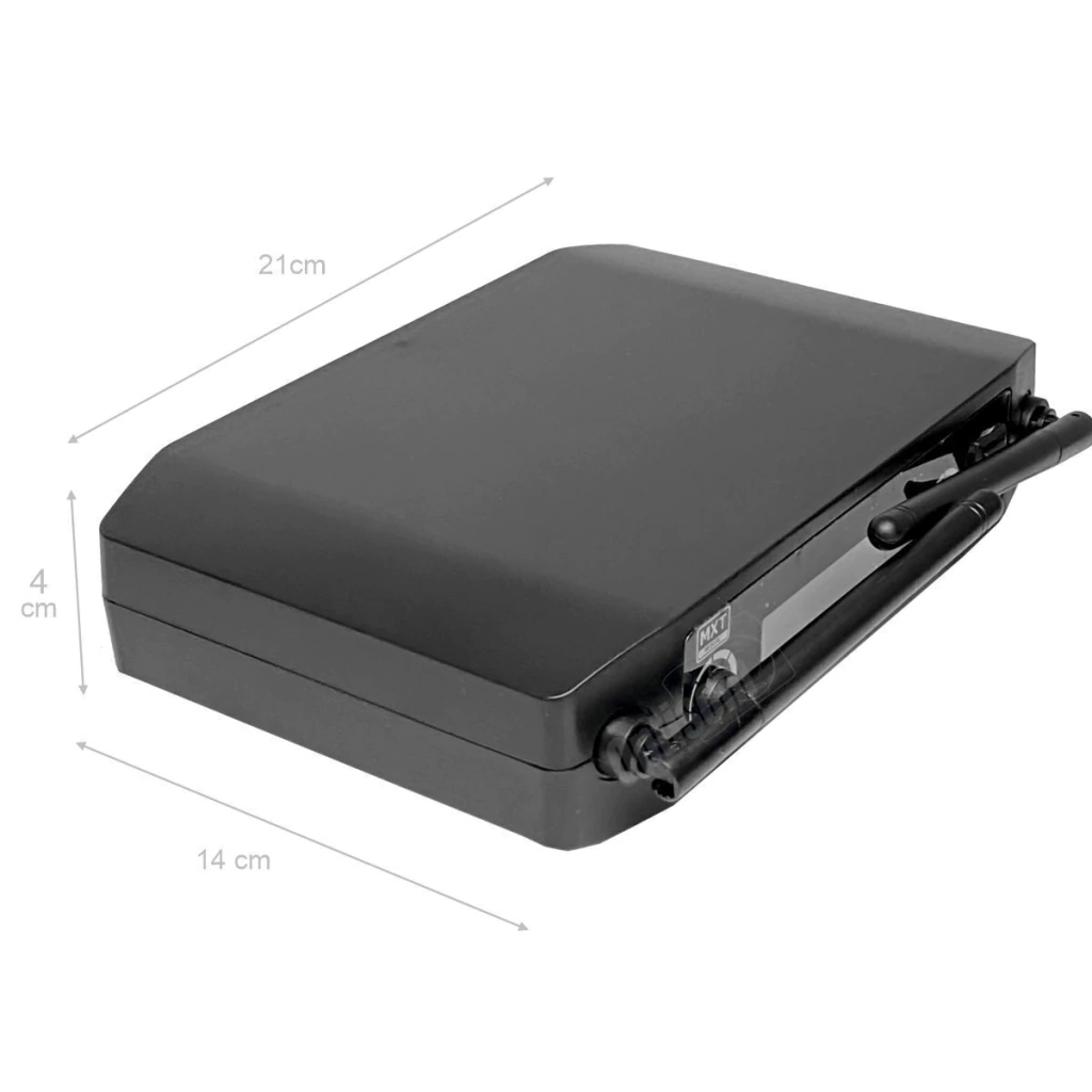 Microfone sem fio de mão DUPLO de 96 canais selecionáveis o que garante um sistema robusto, confiável, fácil de configurar e operar e proporciona um áudio limpo, fiel, de qualidade.