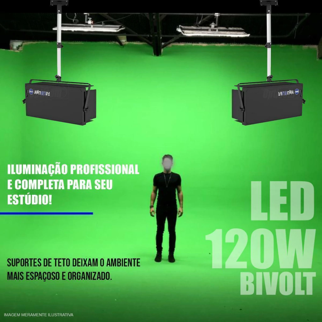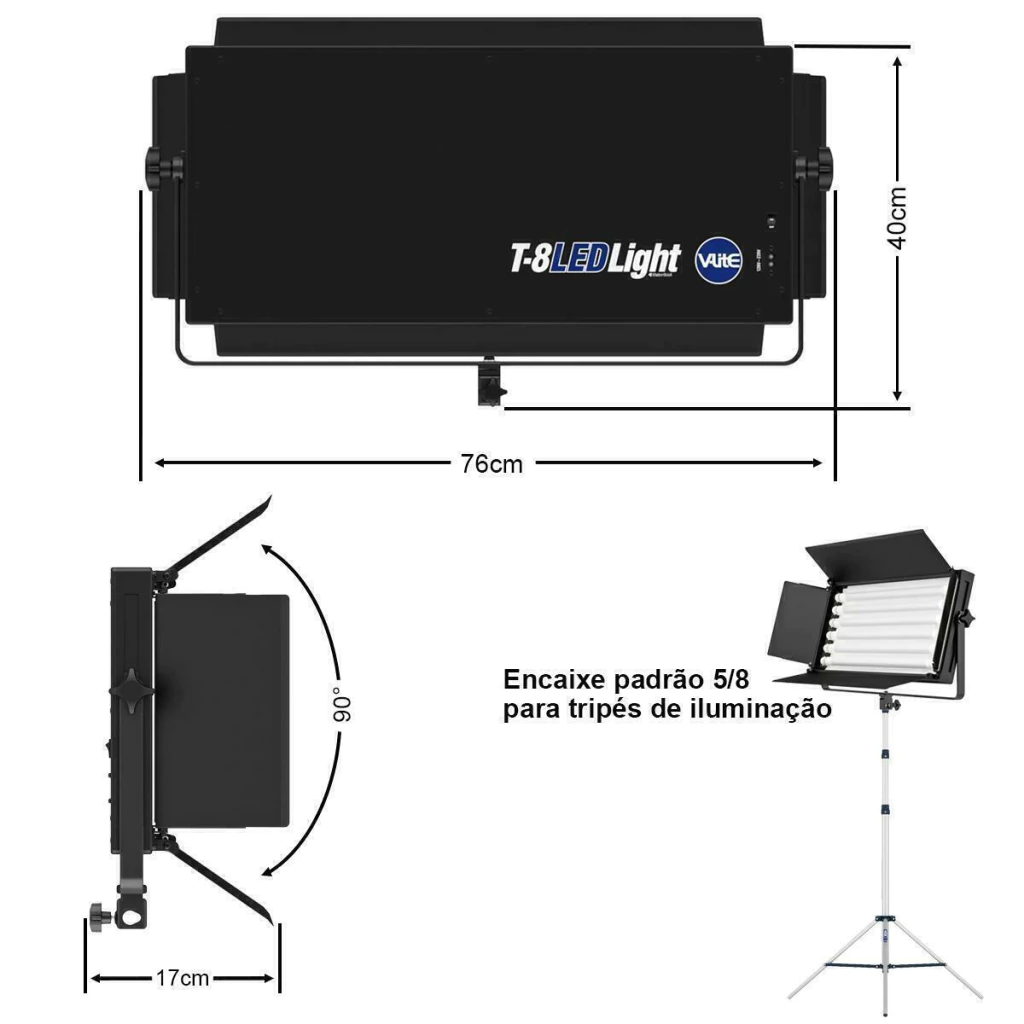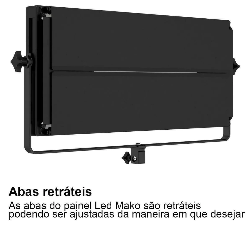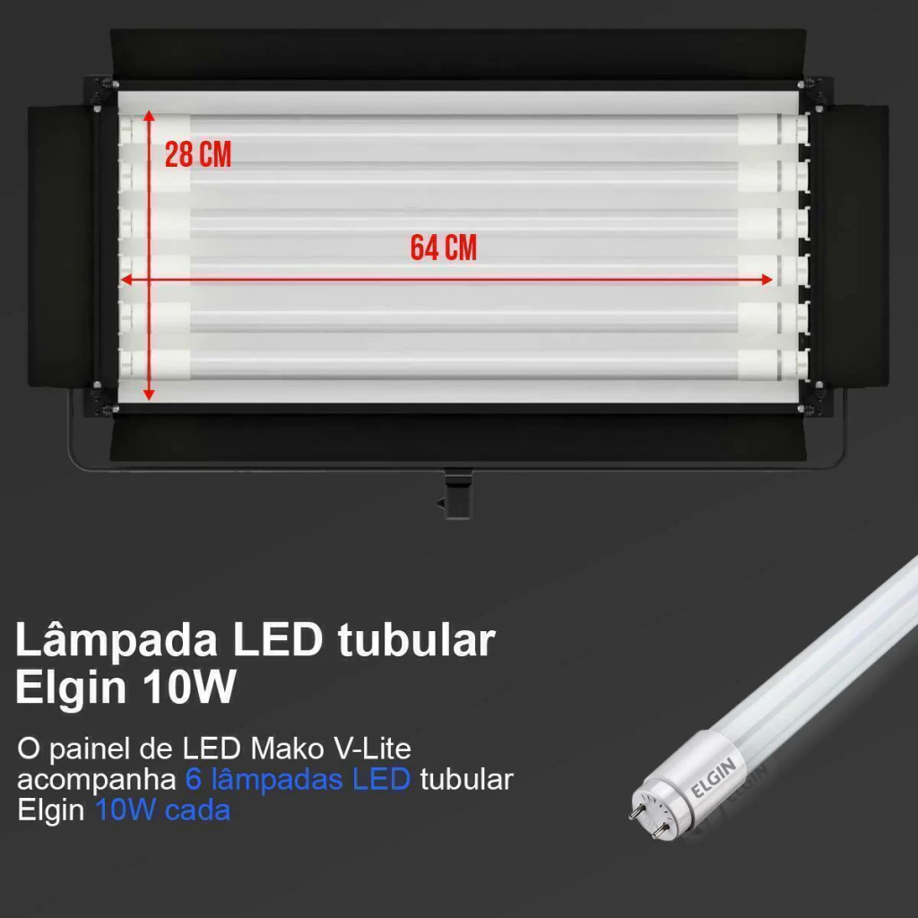Kit 2 Painel Refletor Iluminador de luz contínua LED Mako V-Lite T8 de 60W (cada) e temperatura de cor de 6500K BIVOLT, seu corpo é robusto e resistente, construído em alumínio com yoke em aço.